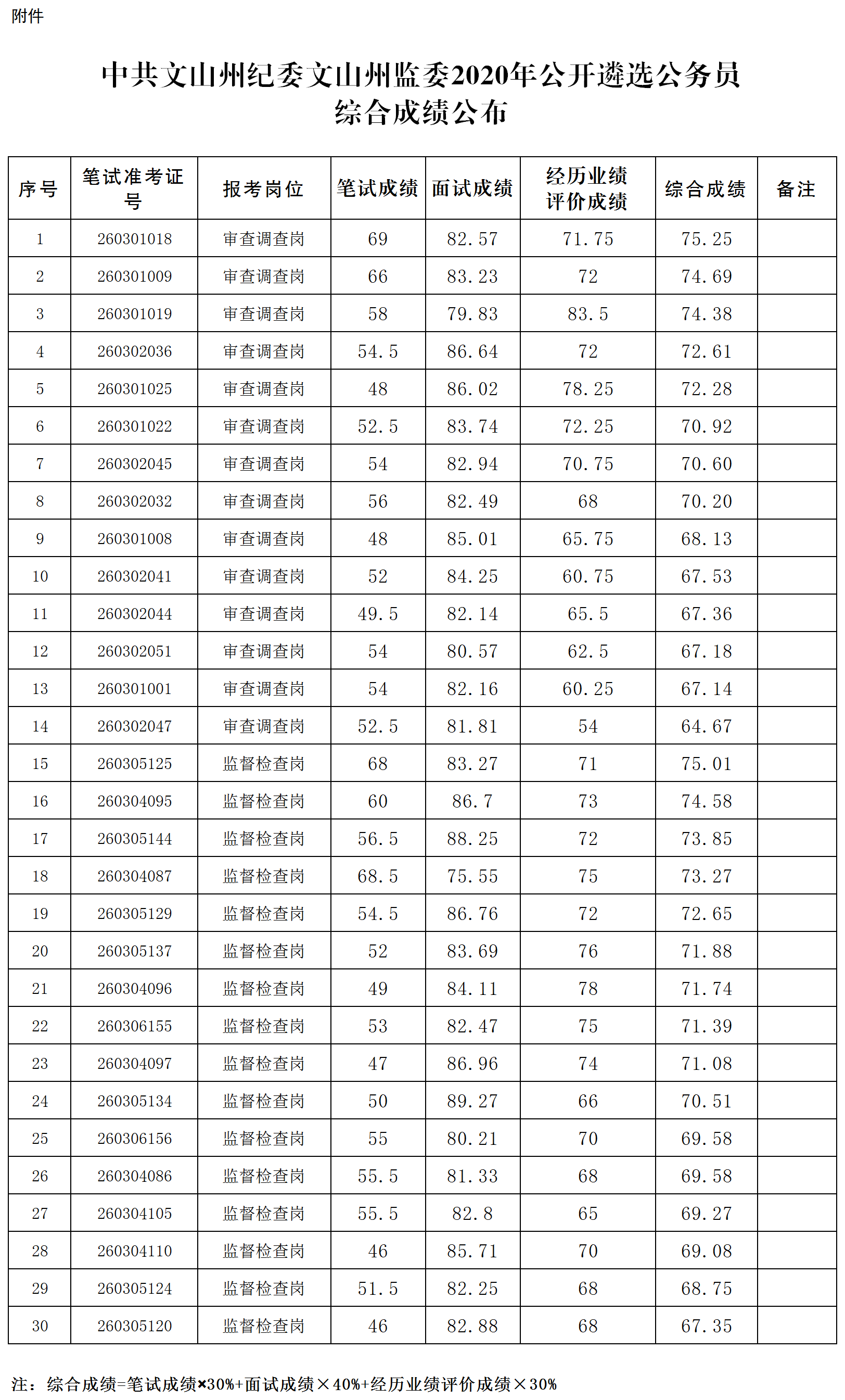 中共文山州紀(jì)委文山州監(jiān)委2020年公開遴選公務(wù)員綜合成績(jī)公布