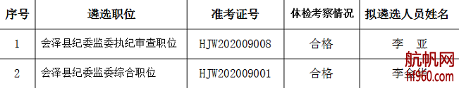 根據(jù)《中共會澤縣委辦公室 會澤縣人民政府辦公室關(guān)于轉(zhuǎn)發(fā)〈曲靖市市直機關(guān)公開遴選公務(wù)員實施辦法(試行)〉的通知》(會辦通〔2017〕63號)要求,按照《中共會澤縣紀(jì)委會澤縣監(jiān)委2020年公開遴選公務(wù)員公告》的時序安排,會澤縣紀(jì)委監(jiān)委2020年公開遴選公務(wù)員報名、資格初審、筆試、資格復(fù)審、面試、經(jīng)歷業(yè)績評價、體檢和考察各項工作已全面完成,現(xiàn)將體檢、考察等相關(guān)情況及擬遴選人員進(jìn)行公示。