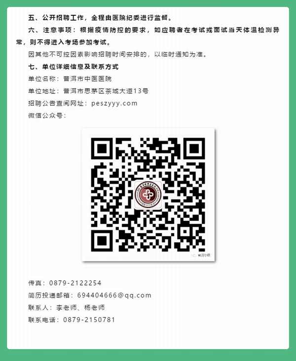 普洱市中醫(yī)醫(yī)院招人啦!報名詳見......