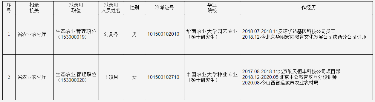 云南省農(nóng)業(yè)農(nóng)村廳關(guān)于2020年度考試錄用公務員擬錄用人員公示