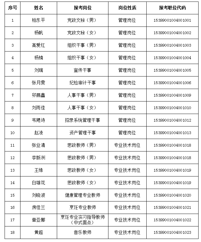 根據(jù)《云南省事業(yè)單位公開招聘工作人員辦法》(云人社發(fā)〔2016〕182號(hào))和經(jīng)云南省人力資源和社會(huì)保障廳批準(zhǔn)實(shí)施的《云南技師學(xué)院2020年事業(yè)單位公開招聘工作人員公告》等有關(guān)規(guī)定,經(jīng)筆試、資格復(fù)審、面試、體檢、考察等程序,現(xiàn)將學(xué)院擬錄用人員進(jìn)行公示,名單如下: