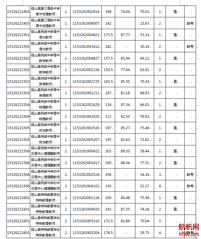 根據(jù)《2020年文山州事業(yè)單位招聘公告》、《硯山縣2020年事業(yè)單位公開招聘工作人員面試有關(guān)事宜的通知》等相關(guān)工作要求,我縣于2020年12月6日對硯山縣事業(yè)單位公開招聘需面試崗位的人員進(jìn)行面試,現(xiàn)將面試崗位人員的綜合成績公示如下: