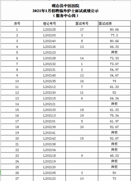 硯山縣中醫(yī)醫(yī)院2021年招聘編外護士綜合成績及試用人員名單公示