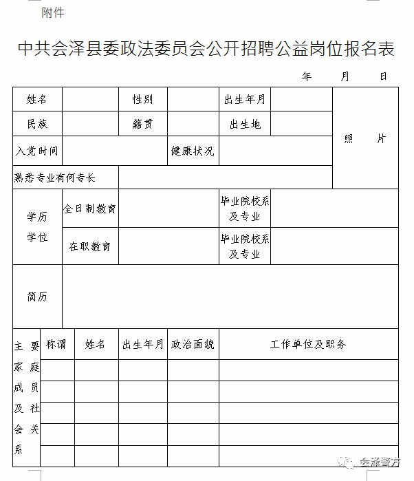 現(xiàn)場報名時請將《中共會澤縣委政法委員會公開招聘公益性崗位報名表》電子版拷貝給聯(lián)系人。