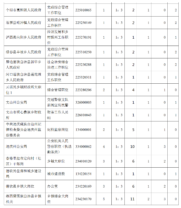 附:云南省2021年度考試錄用公務(wù)員報(bào)名階段裁減及取消職位表