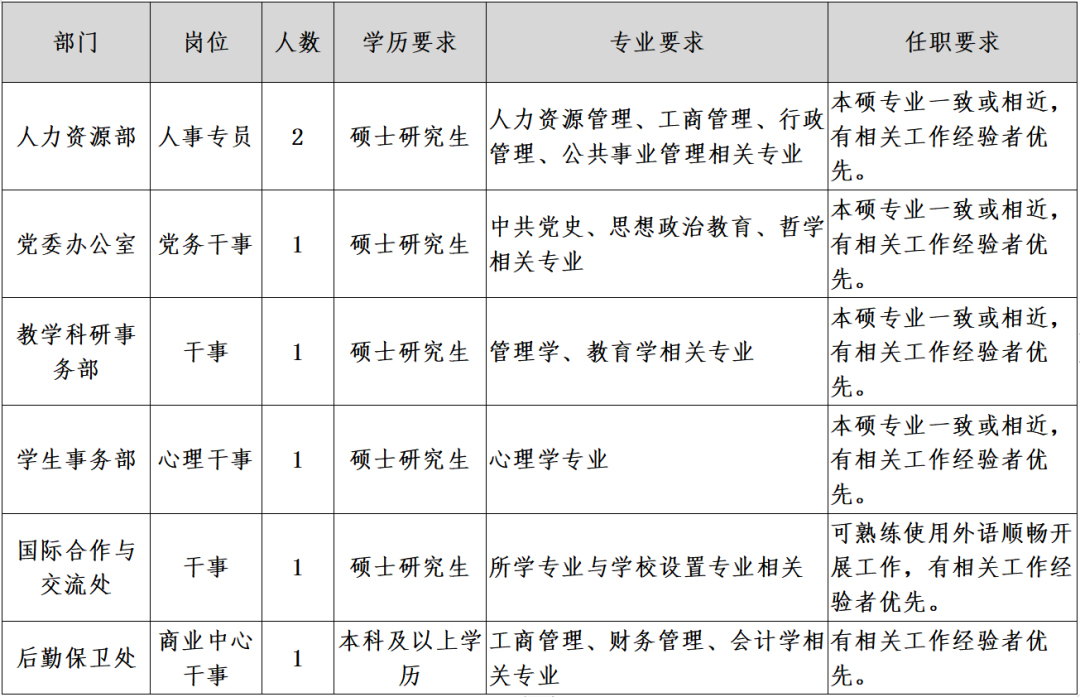 面試時間:結(jié)合應(yīng)聘人員和學校的具體情況靈活安排。