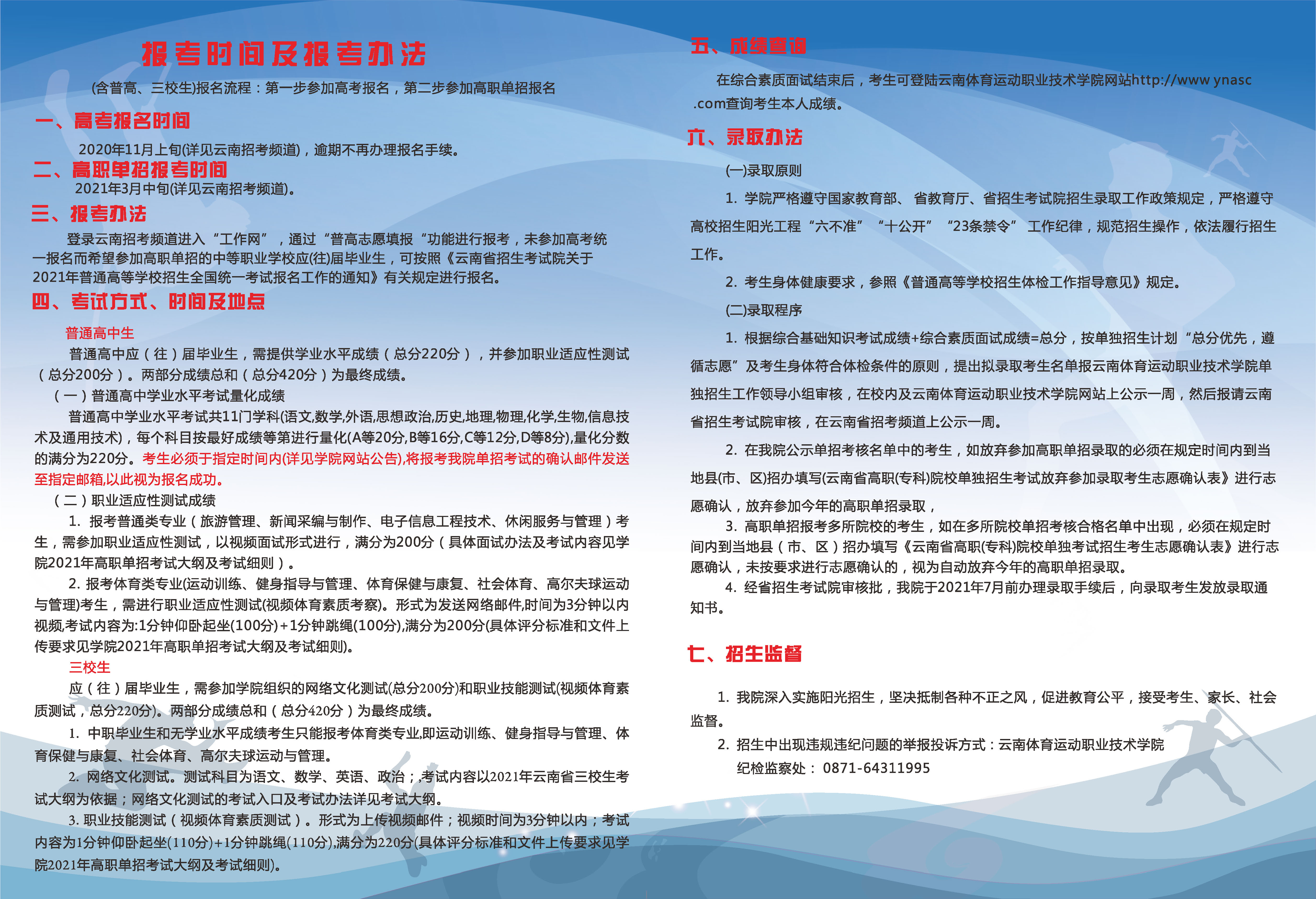云南體育運(yùn)動(dòng)職業(yè)技術(shù)學(xué)院2021年高職單招招生簡(jiǎn)章