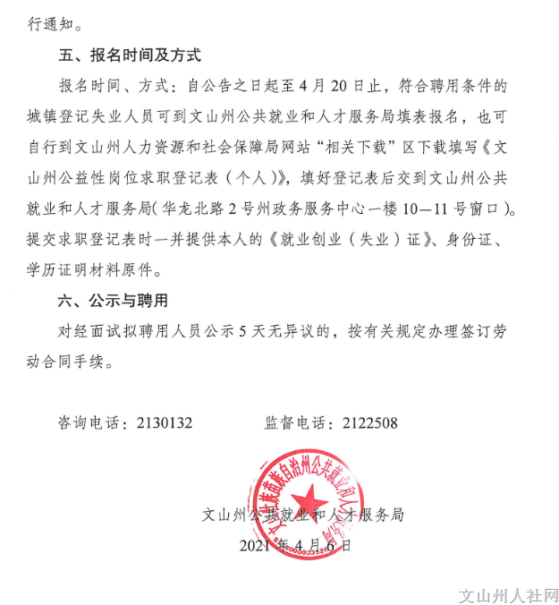 文山州信訪局公開招聘公益性崗位工作人員的通告