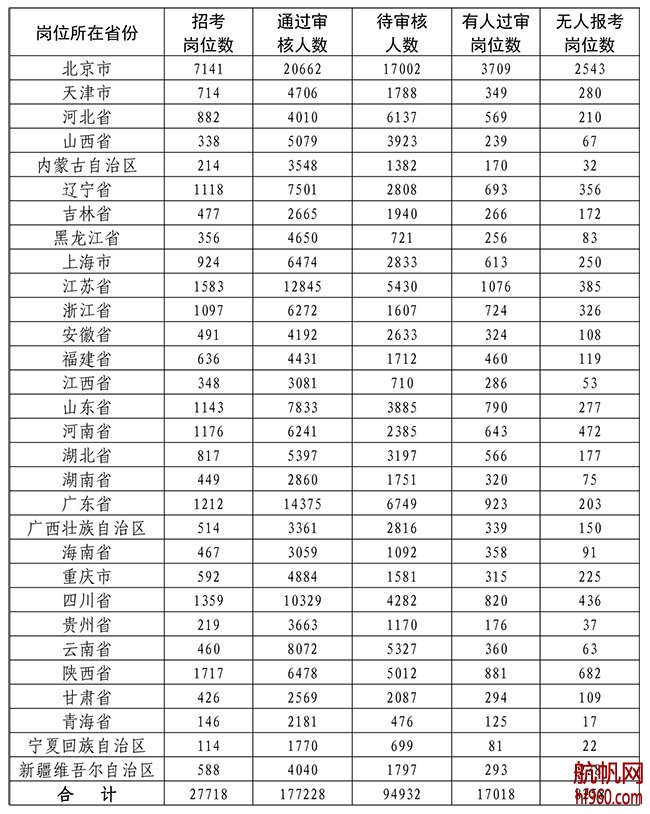 1.截至4月11日17時(shí)各省份崗位報(bào)考情況統(tǒng)計(jì)表