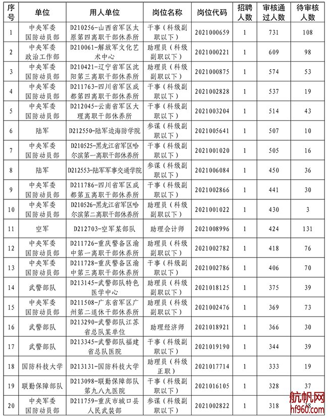 3.截至4月11日17時(shí)熱門崗位報(bào)考情況統(tǒng)計(jì)表