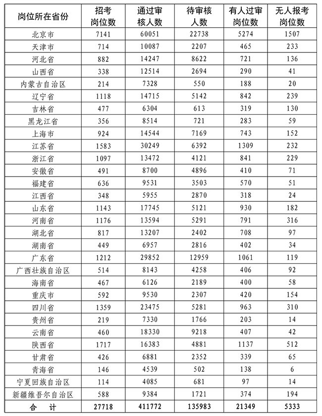 1.截至4月13日18時各省份崗位報考情況統(tǒng)計表