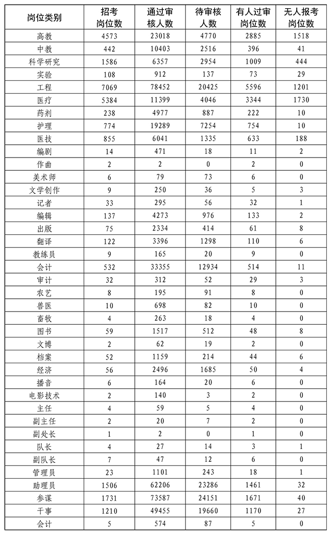 2.截至4月13日18時各崗位類別報考情況統(tǒng)計表