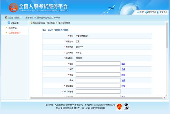 通過點擊“接受”按鈕,跳轉到填寫考生信息頁面,如下圖所示: