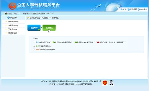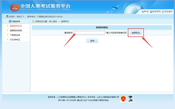 選擇相應的職位,點擊“保存”按鈕,提示保存成功,可以跳轉到報考流程頁面,