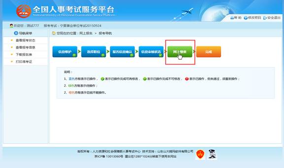 審核通過的考生可以進行網上繳費,點擊報考流程中“網上繳費”選項,可以進