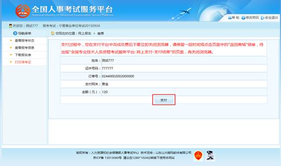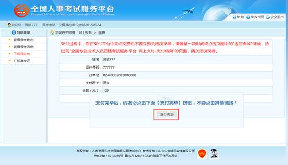訂單確認無誤后,點擊“支付”按鈕,成功后再點擊“支付完畢”按鈕完成網上
