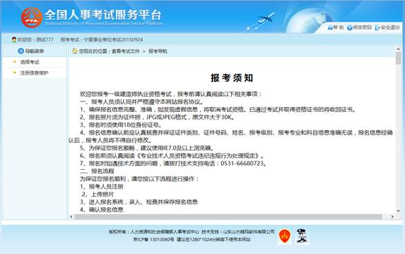 通過點擊“確認”按鈕,提示確認成功后跳轉到報考流程頁面,如下圖所示: