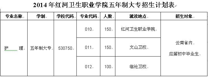 2014年紅河衛(wèi)生職業(yè)學(xué)院五年制大專招生計(jì)劃