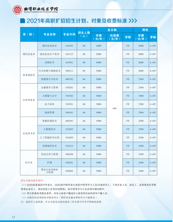 曲靖職業(yè)技術(shù)學(xué)院2021招生簡章