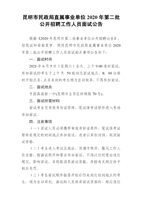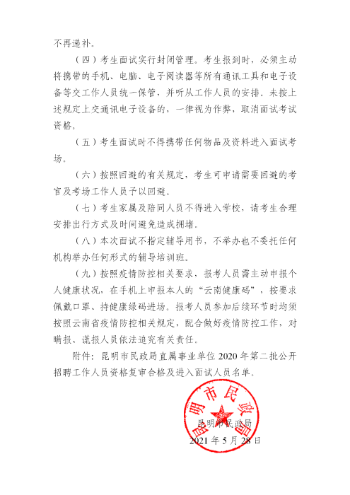 昆明市民政局直屬事業(yè)單位2020年第二批公開招聘工作人員資格復(fù)審合格及進(jìn)入面試人員