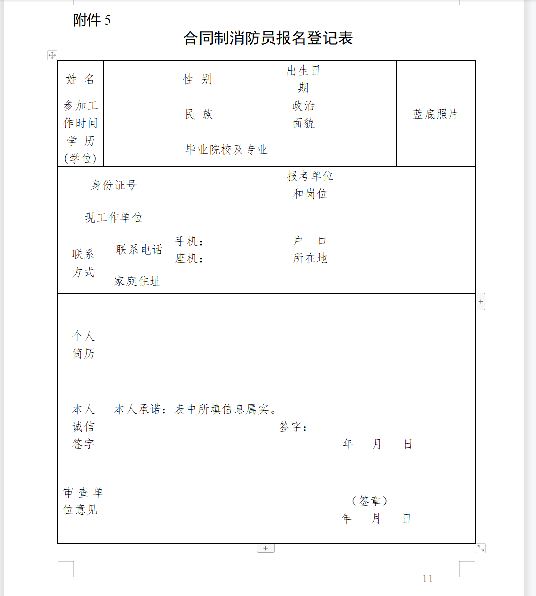 5.合同制消防員報(bào)名登記表