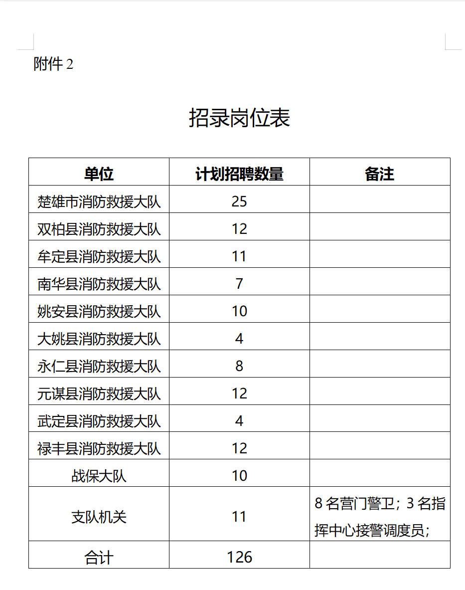 本年度招聘總?cè)藬?shù)為126人。招錄崗位詳見(jiàn)附件2。