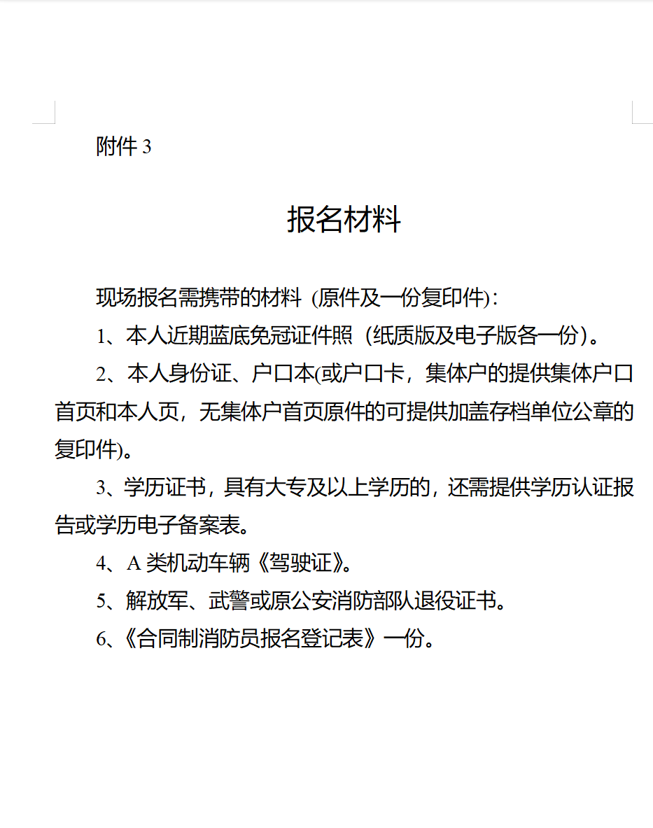 附件:1.測(cè)試內(nèi)容及標(biāo)準(zhǔn)、2.招錄崗位表、3.報(bào)名材料、4.招錄單位聯(lián)系方式及地址、5.合同制消防員報(bào)名登記表
