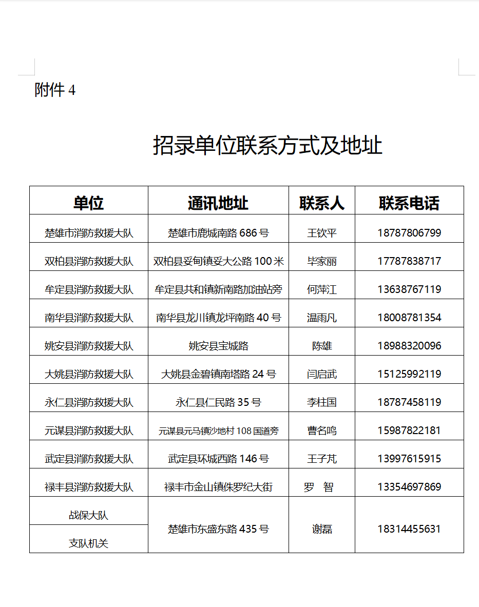 2、報(bào)名方式:按相應(yīng)崗位要求攜帶報(bào)名材料(附件3)到相應(yīng)縣(市)消防救援大隊(duì)(附件4)實(shí)地報(bào)名,填寫(xiě)《楚雄州消防救援支隊(duì)合同制消防員報(bào)名登記表》。