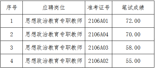 昆明理工大學(xué)津橋?qū)W院思想政治教育專職教師招聘筆試工作已圓滿完成,現(xiàn)將筆試成績公布如下: