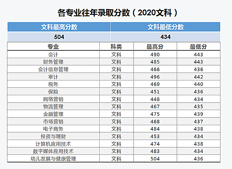 云南財經(jīng)職業(yè)學(xué)院2020年各專業(yè)錄取分?jǐn)?shù)線