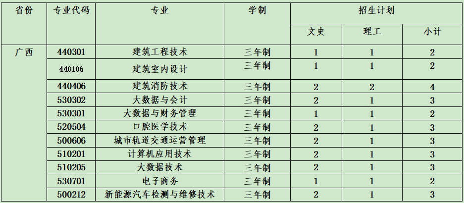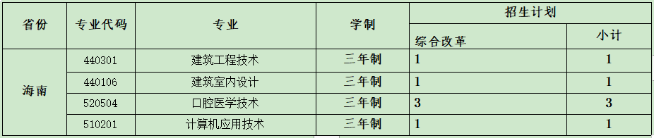 云南城市建設(shè)職業(yè)學(xué)院2021年省外招生計劃表