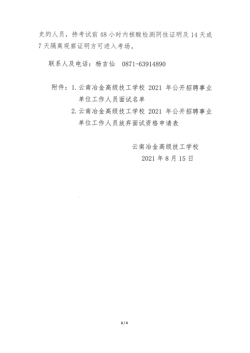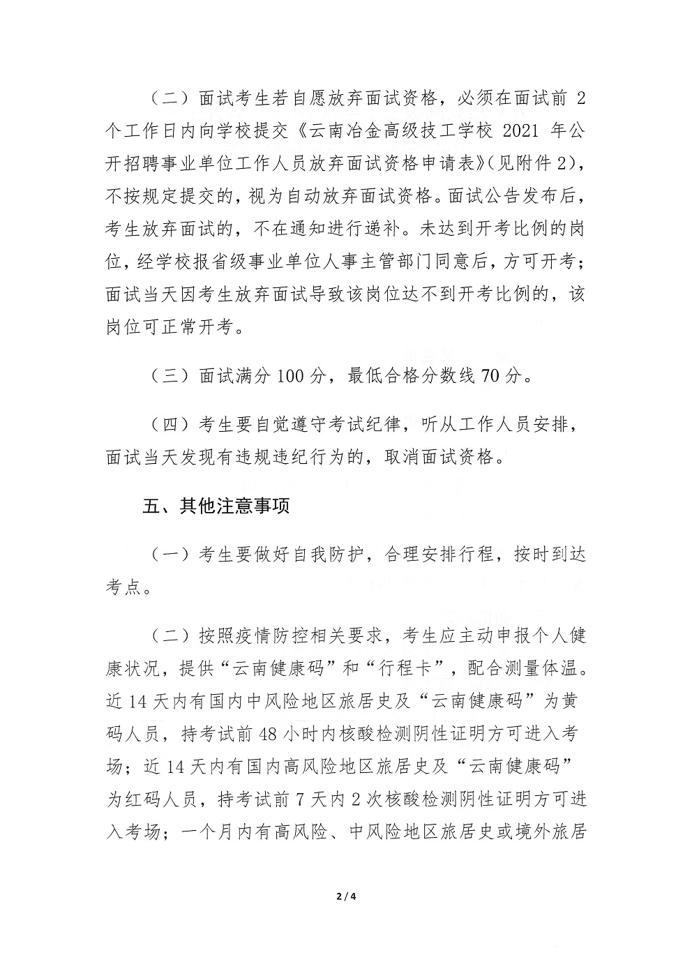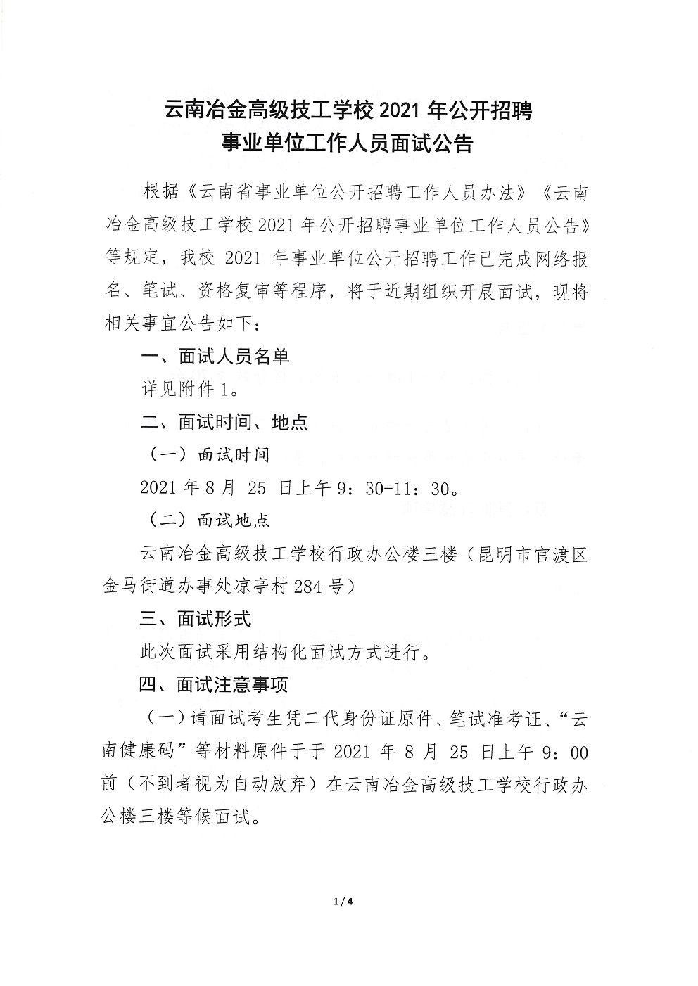 云南冶金高級(jí)技工學(xué)校2021年公開(kāi)招聘事業(yè)單位工作人員面試公告