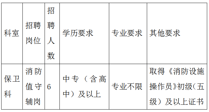 (4)崗位要求的其他相關(guān)證明(如:《消防設(shè)施操作員》五級(jí)(初級(jí))及以上證書(shū))復(fù)印件1份;