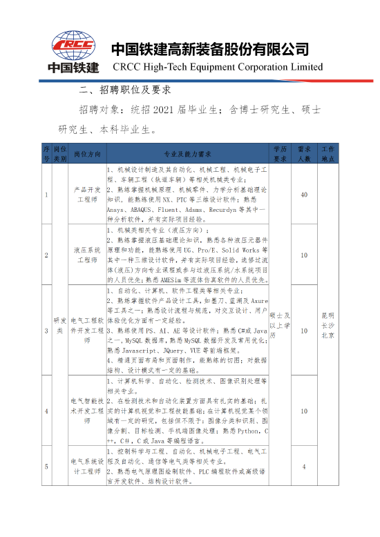 鐵建裝備2022屆畢業(yè)生校園招聘簡(jiǎn)章(秋季)