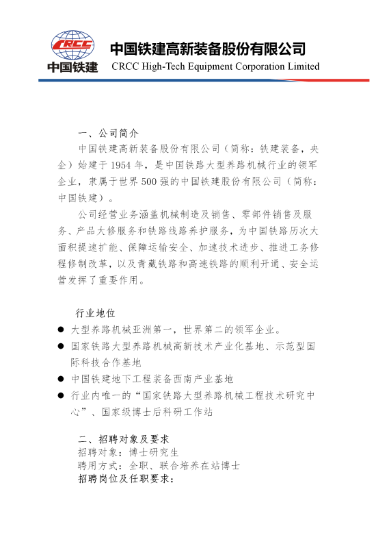 2021-2022年鐵建裝備高層次人才招聘簡章