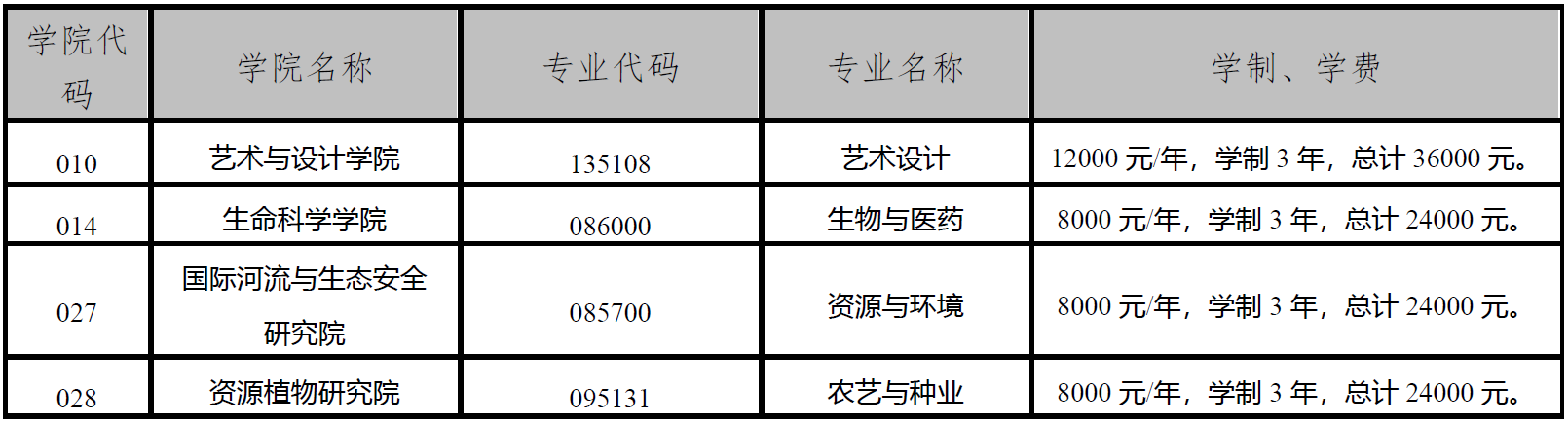 (二)可招收單獨(dú)考試全日制專業(yè)學(xué)位學(xué)費(fèi)標(biāo)準(zhǔn)見下表: