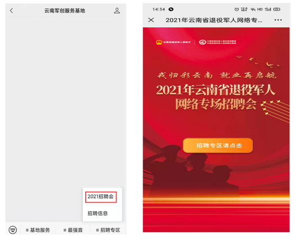 2021年云南省退役軍人網絡專場招聘會通告