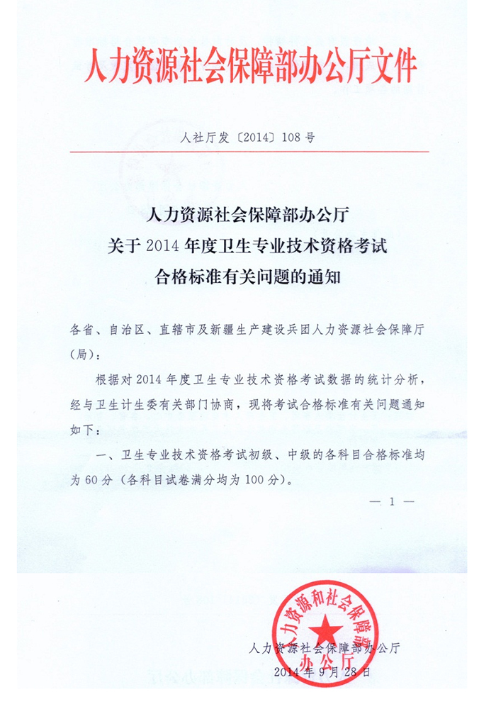 2014年度衛(wèi)生專業(yè)技術(shù)資格考試合格標(biāo)準(zhǔn)及有關(guān)問(wèn)題通知