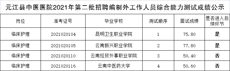 2021年玉溪市元江縣中醫(yī)醫(yī)院第二批招聘(臨床護(hù)理崗)筆試成績公示