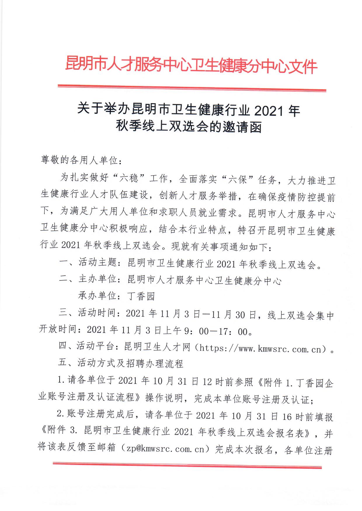 附件:昆明市衛(wèi)生健康行業(yè)2021年秋季線上雙選會(huì)邀請(qǐng)函附件
