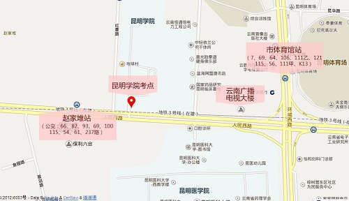 或乘7路、56路、64路、69路、106路、111甲、K13路公交車(chē)至昆明市體育館下。