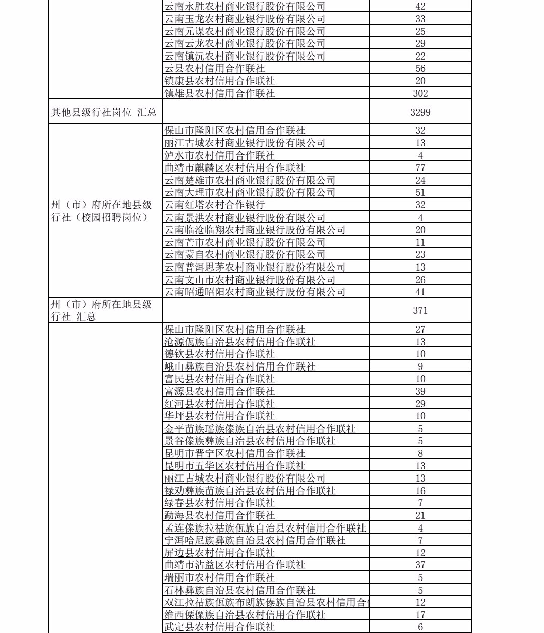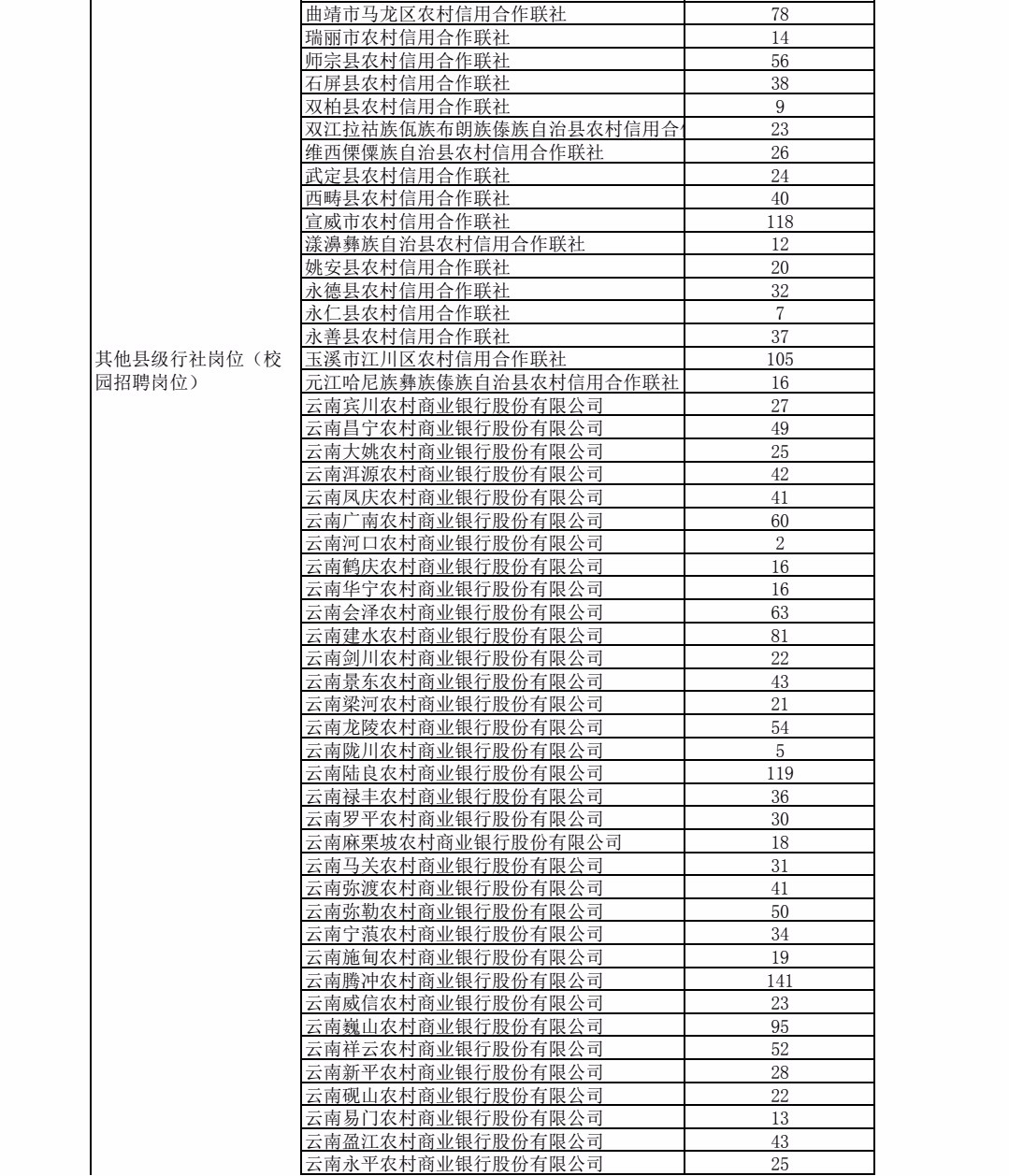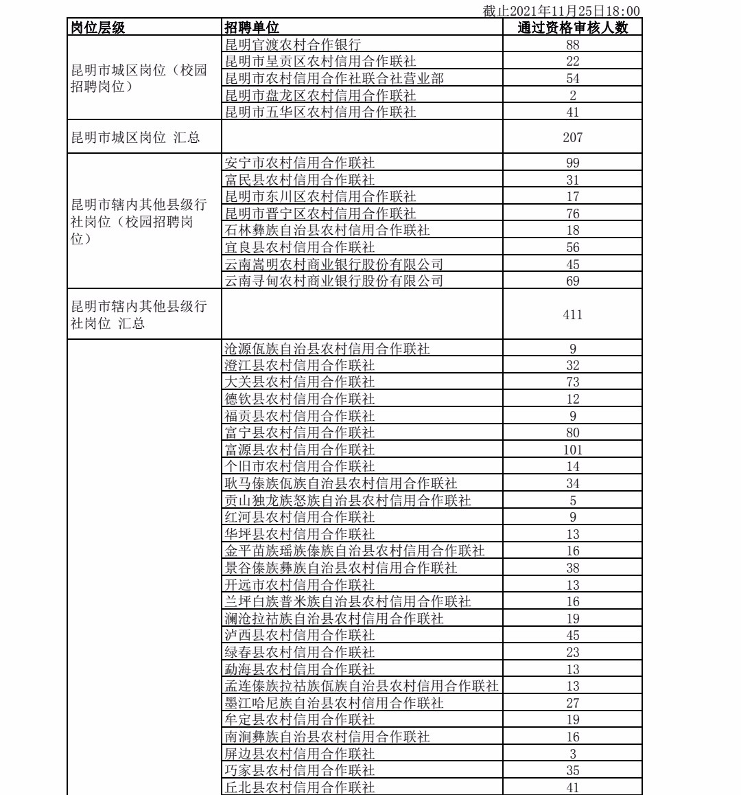 云南省農(nóng)村信用社2021年秋季校園招聘通過資格審核人數(shù)統(tǒng)計