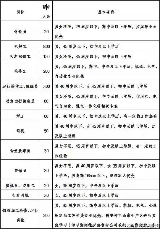 (1)試用期三個月,試用期工資2500-5000元/月(根據(jù)學歷、專業(yè)及崗位的不同,試用期工資不同;入職滿一個月后根據(jù)工作表現(xiàn)上浮工資,電解工試用期工資4000-6000元/月);根據(jù)崗位不同,頂崗后工資3800-8000元/月;