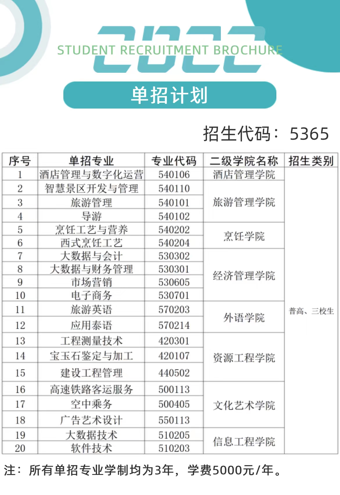 單招速看!云南旅游職業(yè)學院2022單招簡章來啦