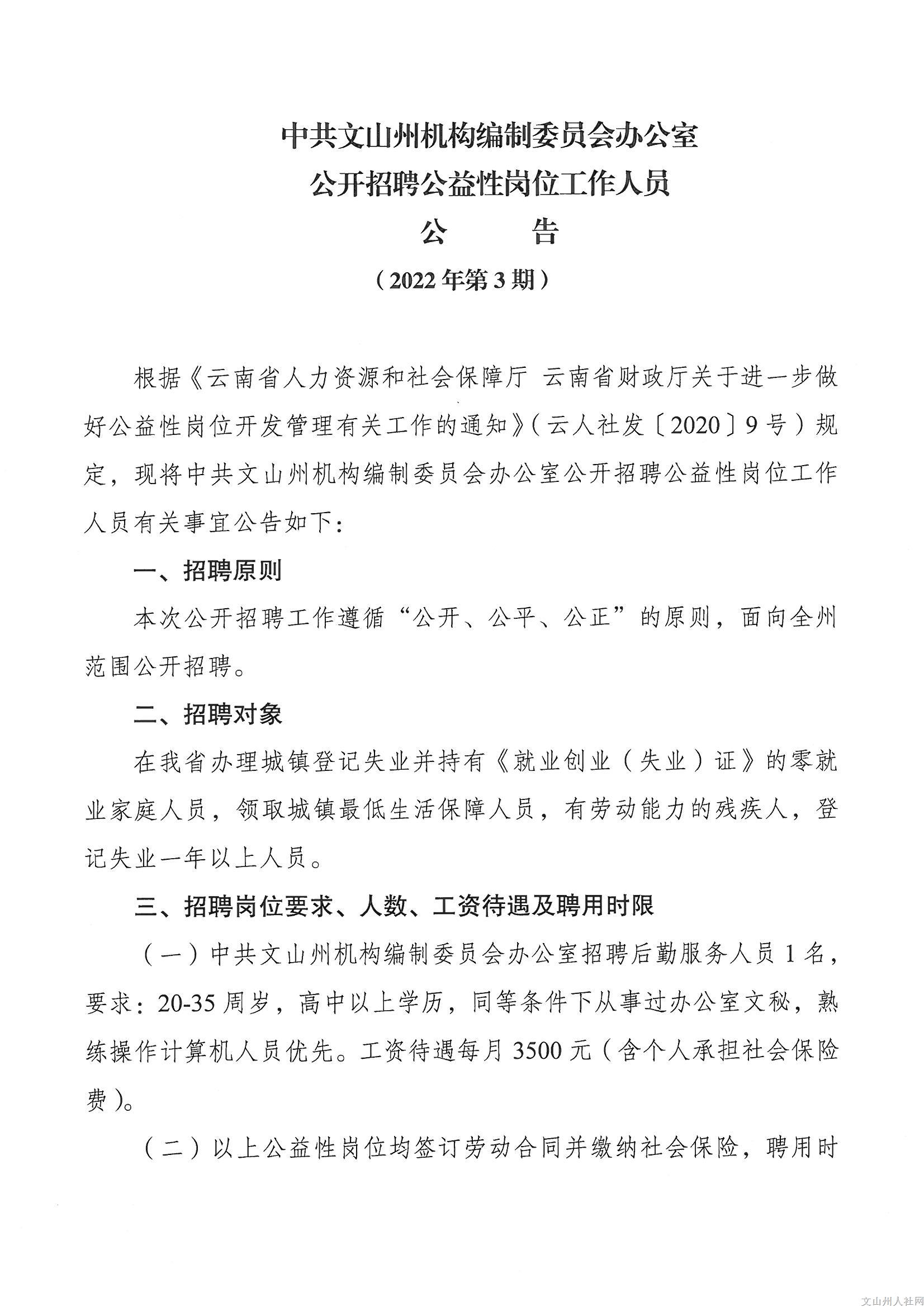 2022年中共文山州機(jī)構(gòu)編制委員會辦公室招聘公益性崗位人員公告
