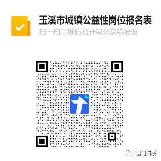 符合《玉溪市就業(yè)局關(guān)于城鎮(zhèn)公益性崗位安置對象報(bào)名的公告》第二條規(guī)定條件的就業(yè)困難人員需填報(bào)《玉溪市城鎮(zhèn)公益性崗位報(bào)名表》,掃描下方二維碼進(jìn)行填報(bào)。