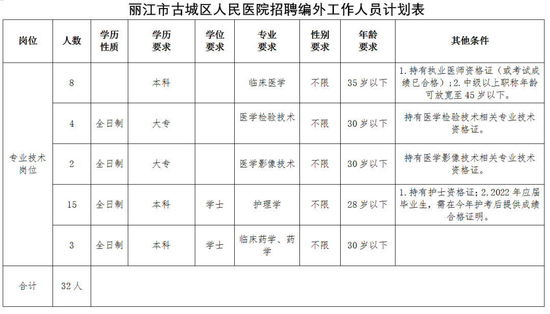 附件1:麗江市古城區(qū)人民醫(yī)院公開招聘編外工作人員計(jì)劃表