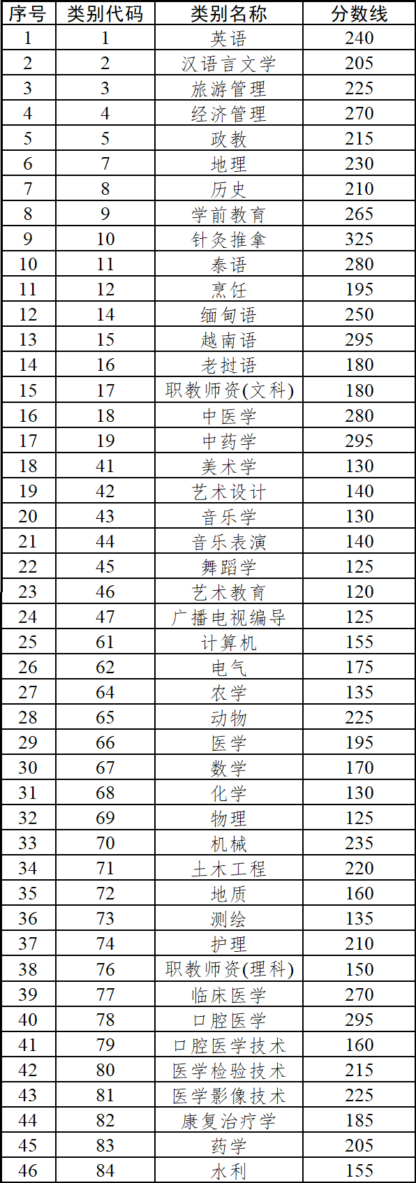 各專業(yè)類別分?jǐn)?shù)線
