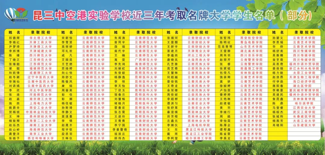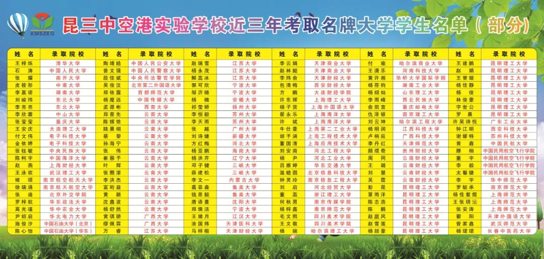 近三年考取名牌大學(xué)學(xué)生名單(部分)