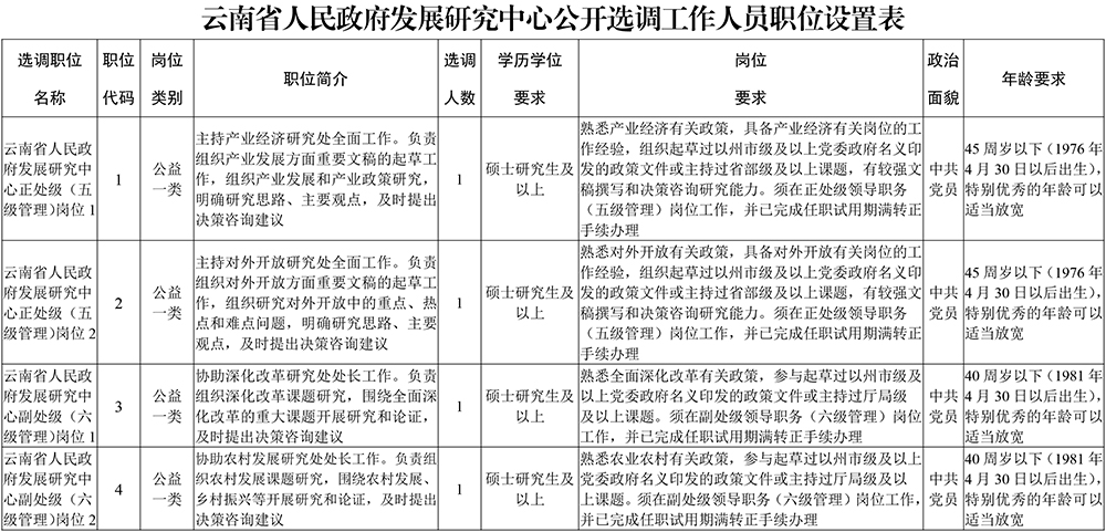 附件:1.云南省人民政府發(fā)展研究中心公開(kāi)選調(diào)工作人員職位設(shè)置表